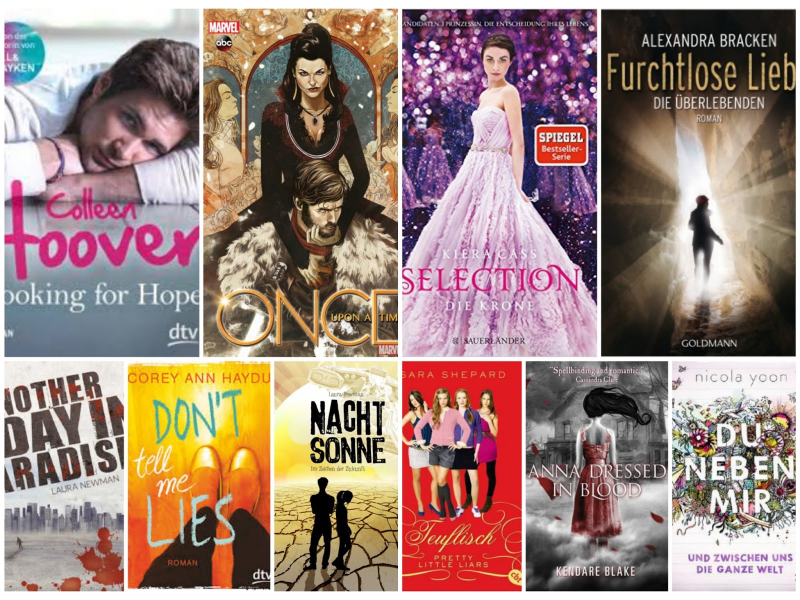 Die Reihenfolge ist in diesem Fall nicht ausschlaggebend wie ein Ranking. Jedoch stimmt es, dass ich Looking for Hope und das Graphic Novel von Once upon a Time zurzeit am meisten begehre. Wenn ihr mir eines der anderen Bücher schmackhaft reden wollt, dann nur zu!